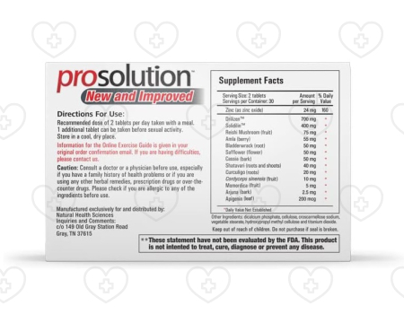 プロソリューションの推奨用量は、食事と共に1日2錠です。最良の結果を得るためには、数週間にわたって一貫して使用することが勧められます。